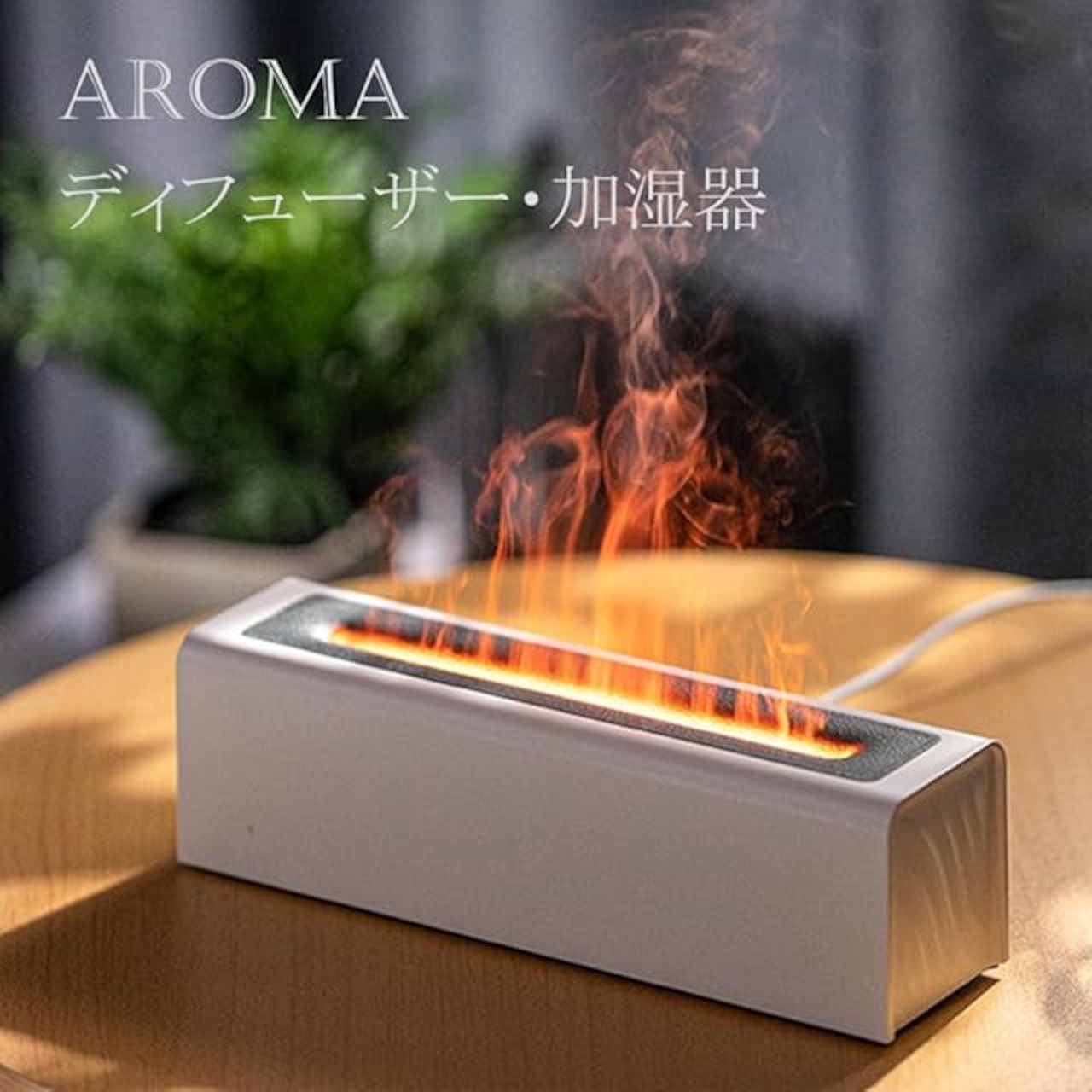 加湿器 小型 アロマ 炎みたい 焚き火 ディフューザー スリム コンパクト ledライト 寝室 卓上 静音 アロマディフューザー 炎 火 ライト付き 給電式 タイマー 超音波 上から給水 おしゃれ インテリア アロマ対応 ブラック | ascend