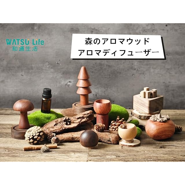 Watsu Life アロマウッド アロマディフューザー 木製 シャビーウッド 黒胡桃 マッシュルーム キノコ型 ディフューザー木 おしゃれ ポータブル アロマポット 瞑想用 寝室 書斎 安眠サポート 水不要 インテリア飾物 室内インテリア (ウッドブロック型アロマウッド) | ascend