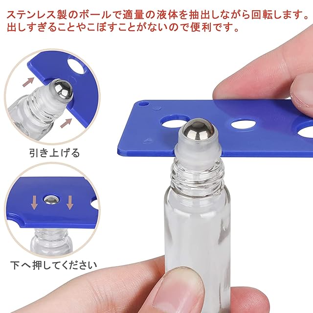 便利なロールオンタイプ:手作り精油などのロールオン容器として人気のステンレス鋼製ロールオンタイプですので、香水類を飛び散らせません。ロールオンボトルは先端にスチールボールが付いているので、つけすぎを防止しつつ、手作りの香水や虫除けなど、肌に塗る時にとっても便利です。