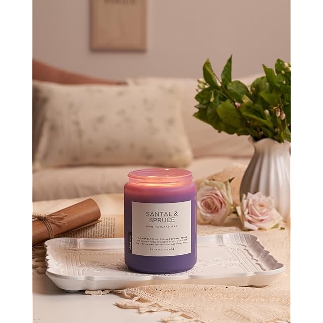 M&SENSE サンタルスプルースソイキャンドル 家庭用香り 10オンス 110時間燃焼アロマセラピーキャンドル ストレス解消、瞑想、リラクシングスパ、パインの香りのジャーキャンドル レディース メンズ