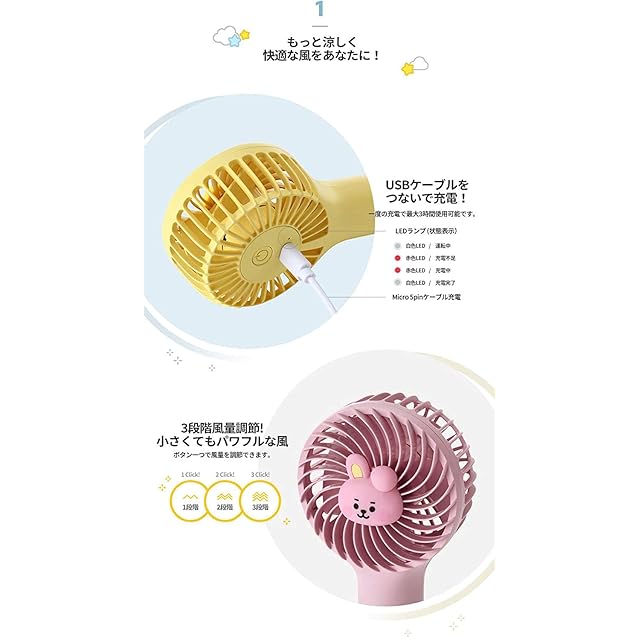 ソロモン商事 BT21 ミニ携帯扇風機 MINI HANDY FAN 2020年 新バージョン ハンディファン ストラップ付 扇風機 夏 涼しい 3段階 パワフル USB式 Micro 5pin ケーブル LEDランプ ボタン式 コンパクト 軽量 (KOYA) | ascend