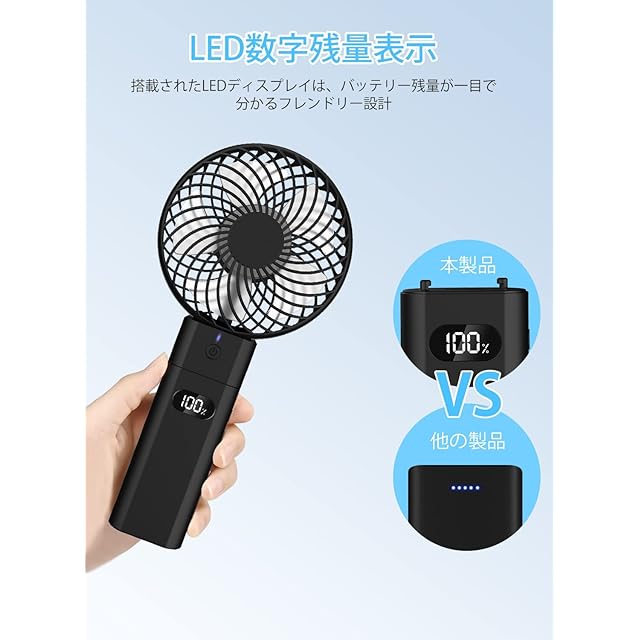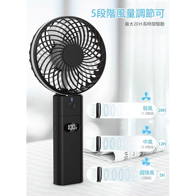 ANSOLO 携帯扇風機 ハンディファン 充電式 手持ち扇風機 小型 ミニ LEDディスプレイ 大容量5200mAh 折りたたみスタンド機能 5階段風量調節 最大20時間稼働 卓上扇風機 usb扇風機 強力 省エネ 静音 熱中症対策 オフィス アウトドア用 【PSE認証済】ブラック | ascend