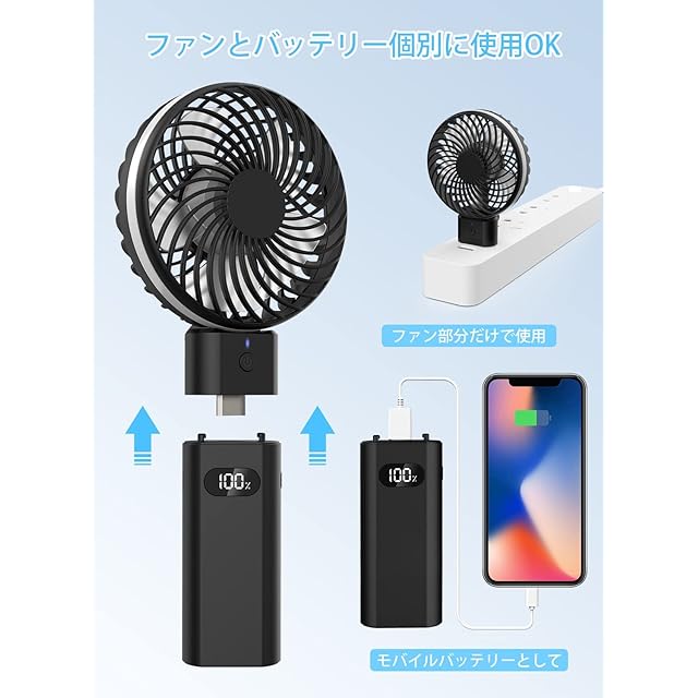 ❄【3wayの扇風機として】手持ち扇風機・卓上扇風機・とモバイルバッテリーとの3つの機能を同時に備え、熱い夏を乗り越えるために最適の商品です。暑い日に手軽で便利なハンディファンとして蒸し暑い満員電車の中でも、ほかの迷惑をかけないように快適に使えます。折り畳めば卓上用になり、オフィスや部屋のデスクなどで使えます。工夫次第でキャンプやピクニックなど屋外でも便利に使えます。また直接USBポートからつなげばバッテリーなしで使えます。取外したバッテリーはモバイルチャージャーとして使え、扇風機として使わないシーズンオフもバッテリーとして活躍する便利家電です。ご注意:本製品はベビーカーに使用しないでください。