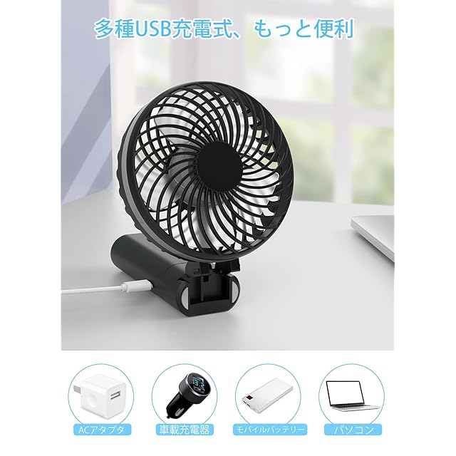 ❄【残量確認&5段階風量調節可】搭載されたLEDディスプレイは、バッテリー残量が一目で分かるフレンドリー設計。1%刻みで表示され、ランプ式より電池残量を細かく把握でき、充電のタイミングも分かりやすくなります。 お好みに合わせて5段階の風量調節機能が搭載し、シーンによってご自由で風量を簡単に調節できる。1-2段階は超静音で職場や図書館でも快適に過ごせる。3-5段階は強風モードでパワフル送風し、涼しくなります。5枚羽根と斜線型の前カバーを使用して、空気を均等に細かく送り出しながら、強力な風を届けます!高性能ICチップとバッテリーセルを採用し、過充電、過電圧、過電流、過放電、ショートの際に、自動的に充電を停止します。また本製品はPSEマーク取得しておりますので、安心・安全にご使用いただけます。