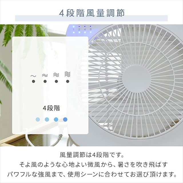 風量調整:4段階(微・弱・中・強)、オフタイマー:1・2・4・8時間(未設定の場合、8時間で自動オフ)