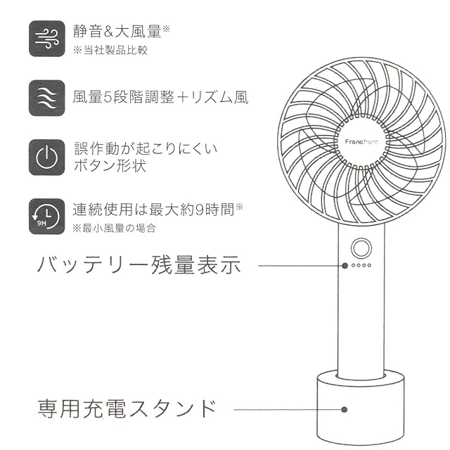 ハンディファン 充電 扇風機 ハンディ フランフラン ハンディファン グラデーション Francfranc FRAIS HANDY FAN GRADATION 手持ち扇風機 USB 充電 充電スタンド ハンディ 軽量 充電式 携帯 扇風機 2023 (パープル) | ascend