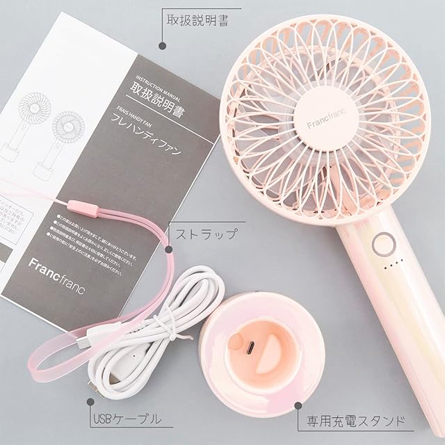 ハンディファン 充電 扇風機 ハンディ フランフラン ハンディファン オーロラ Francfranc FRAIS HANDY FAN AURORA 手持ち扇風機 (ホワイト)