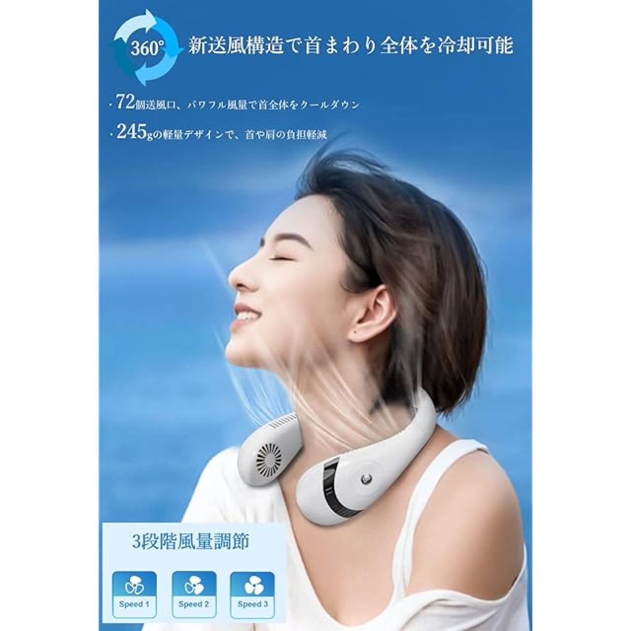 ネッククーラー 首掛け扇風機【2023年モデル】 羽なし首掛けクーラー5000mAh大容量 折り畳み可能 3段階風量調整 携帯扇風機 ネックファンどこでも使える静音性 軽量 冷感 熱中症対策 通勤通学 キャンプ アウトドア暑さ対策 (ホワイトA) | ascend