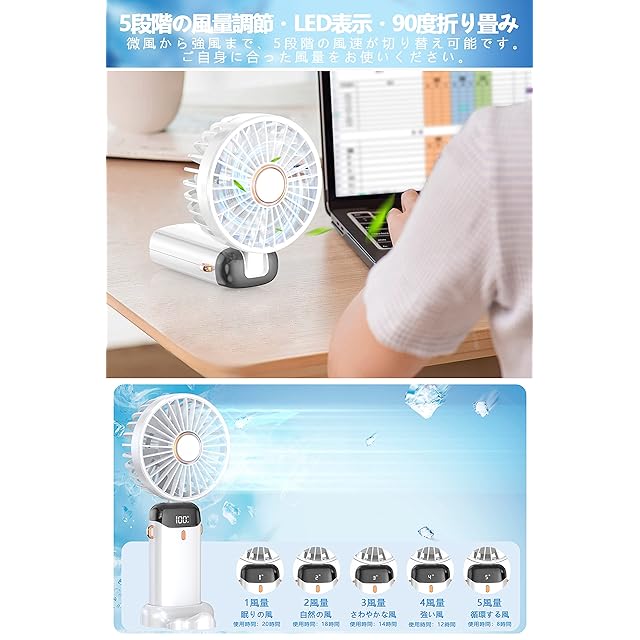 携帯扇風機 小型 卓上扇風機 TAVIOALミニファン ハンディファン 卓上 冷却ファン キャンプ クリップ 首掛け 扇風機 モバイルバッテリ 5段階風量調整 最大18時間動作 熱中症対策 折り畳み式 コンパクトスタンド機能 旅行/自宅/オフィス用/通勤 通学適用 | ascend
