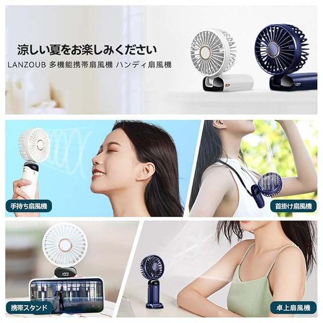 lanzoub 携帯扇風機 ハンディファン 充電式【2024最新·4in1機能搭載·20dB静音】5000mAh大容量 ハンディ扇風機 手持ち扇風機 5段階風量調節 ミニ扇風機 卓上扇風機 強力 最大20時間動作 usb 扇風機 手持ち 卓上 首掛け扇風機 190g軽量 熱中症対策 旅行/自宅/オフィス用/お祭り/花火大会/ショッピングなど適用 説明書付き(ホワイト) | ascend