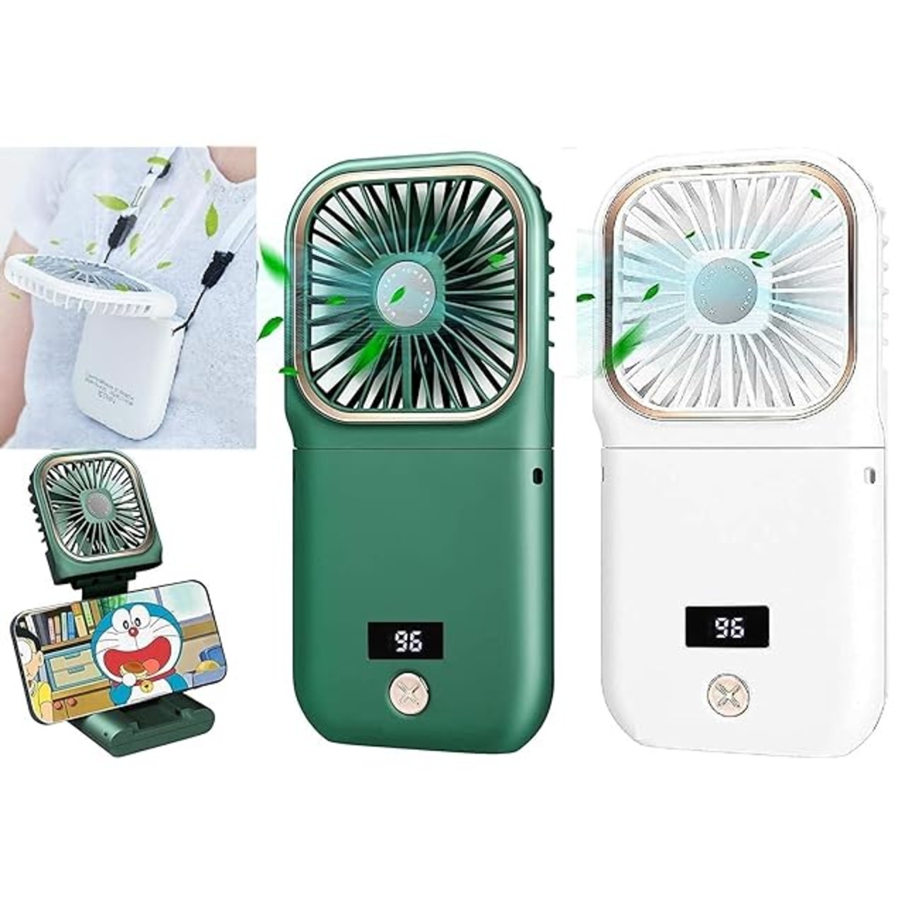 2個セット 緑&白 携帯扇風機 扇風機手持ち 卓上 首掛け扇風機 ハンディファン USB充電式 折り畳み 3000mAh 3段階風力調節