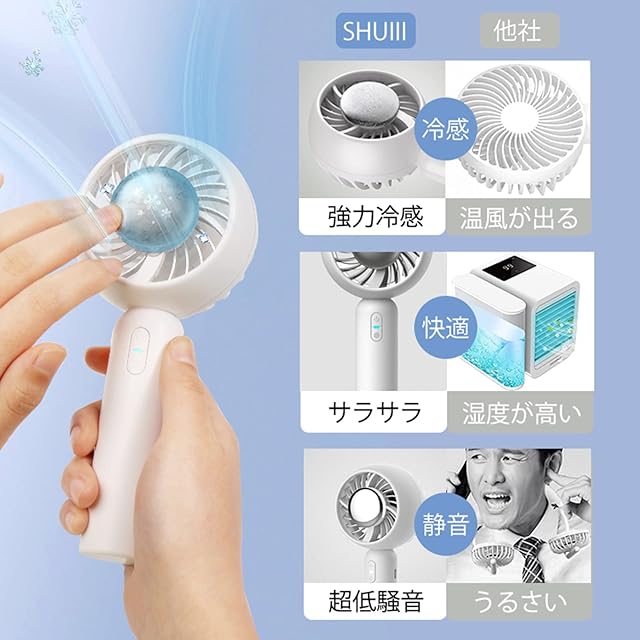 【先端技術&1秒冷感】 携帯扇風機 ハンディ ファン 冷却プレート 手持ち 扇風機 卓上 静音 3段階風量調節 11時間連続稼働 USB 充電式 急速充電 DCモーター 小型 ミニ クーラー 強力 コンパクト 軽量 持ち運び 冷却グッズ 熱中症対策 キャンプ オフィス 車内 アウトドア (ホワイト)