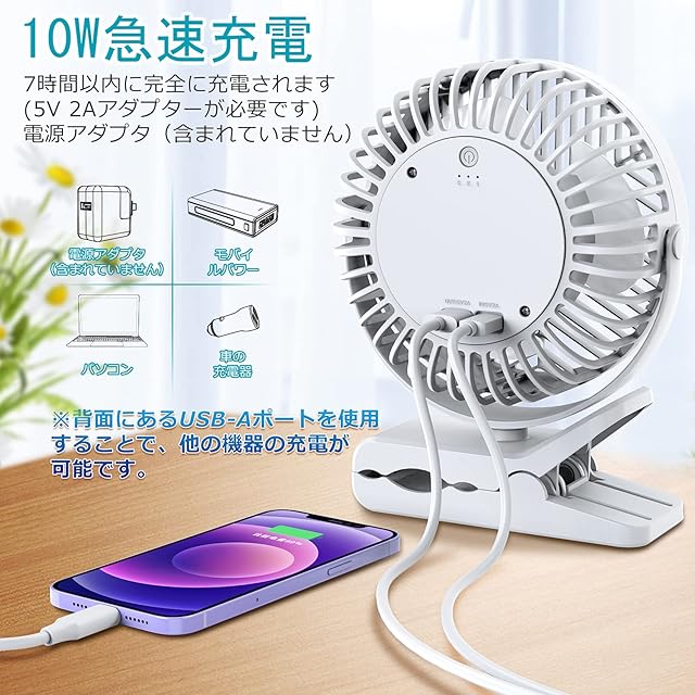 【10000mAh電池内蔵】FreeFly 充電式クリップ扇風機 卓上扇風機 直径約10CM羽根 14cm大型ファン搭載 風量3段階調整 Type-C・USB-A端子搭載 スマート急速充電対応 360度角度調整 デスク・リビング・野外など… | ascend