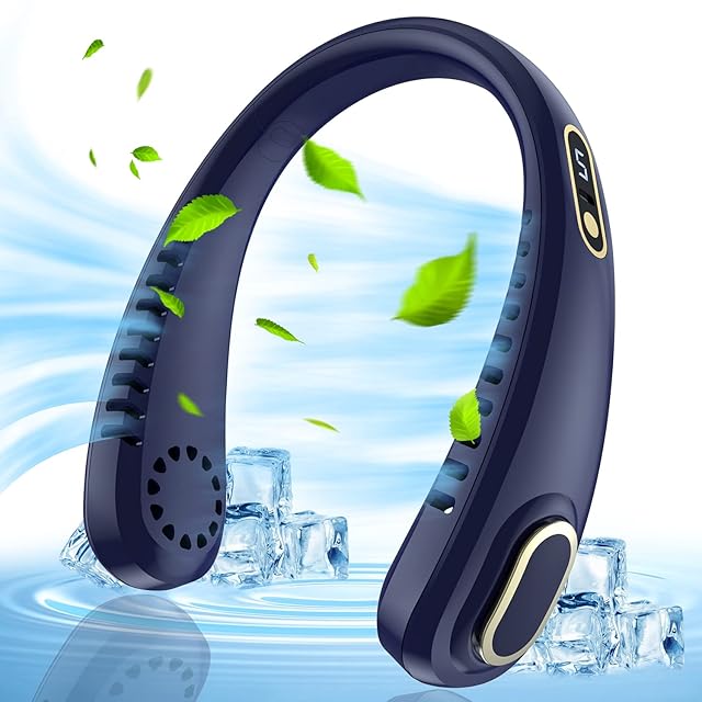 SAMONIC 首掛け扇風機 ネックファン 5段階風量調節 大風量 5500mAh大容量 16.5h超長持続時間 ネッククーラー 低騒音 羽根なし 携帯扇風機 軽量 持ち運び便利 熱中症対策 高温対策 通勤、旅行、ランニング、ハイキングに最適 (ブルー)