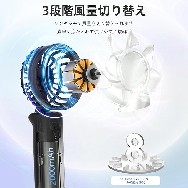 FrSara ハンディファン 携帯扇風機 手持ち扇風機 3段階風量 Type-c充電式 持ち運び便利 静音 折り畳み式 超軽量 小型 強風 花火大会 熱中症対策 ライブに適用 ストラップ付き | ascend