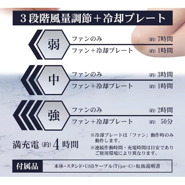 付属品:専用スタンド・充電用USBケーブル(Type-C)/※この製品はUSB充電専用です。