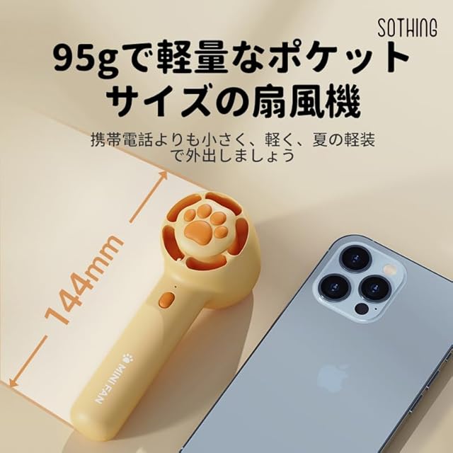 SOTHING 手持ちミニ扇風機 -猫爪 ハンディ扇風機 PSE認証済み 携帯扇風機 ハンディファン 手持ち USB充電式 小型 せんぷうき 風量3段階調節 ミニ扇風機 コンパクト 熱中症対策 かわいいデザイン 熱中症/暑さ対策