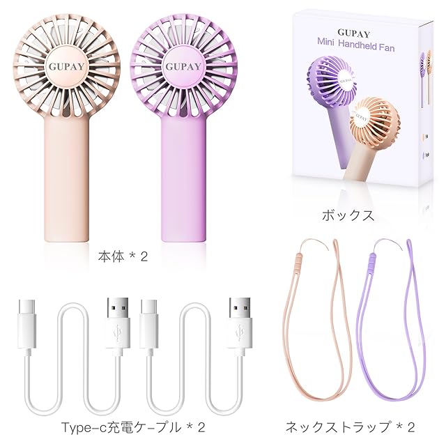 【梱包内容】携帯扇風機*2、USB-Type Cケーブル*2、取扱説明書*1。ご購入日から6ヶ月間の保証付きです.何がご質問とご要望がありましたら、お気軽にご連絡お願い致します.