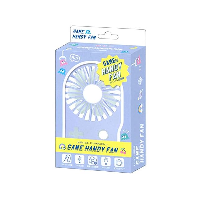 ゲーム機みたいなパロディタイプのハンディ扇風機が新登場!!<br><br> 持ち運びに便利な小型のUSB充電型扇風機。<br> microUSBケーブルを使用して、USB電源から充電します。<br><br> レジャーや野外フェスなどのイベントやさまざまなシーンで便利に大活躍です!<br><br> ボタンで風量2段階調節ができます。<br><br> プレゼントにも喜ばれそうなキャラクターグッズです♪<br><br> 本体サイズ:約H132×W77×D22mm<br> パッケージサイズ:約H168×W94×D35mm<br><br> 電池容量:リチウムポリマー電池800mAh<br> 電池寿命:約500回(充電回数)<br> 連続使用時間:約2時間(強)/約3.5時間(弱)<br> 充電時間:約2時間<br> 本体重量:約75g(本体のみ)<br> 付属品:USBケーブル、ストラップ、落下防止リング
