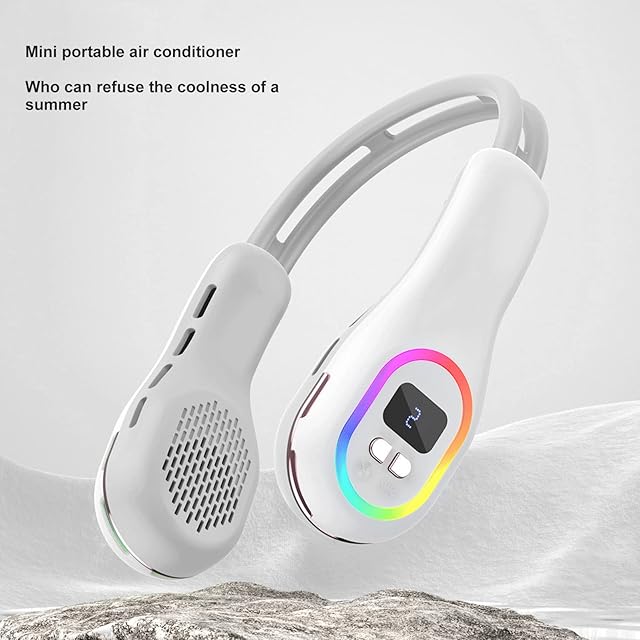 2023アップグレードハンギングネックファンブレードレス、3600MAH充電式ウェアラブルファン低ノイズ3スピードハンズフリーファン、屋外旅行用の7色ライト付きポータブルブレードレスファン | ascend
