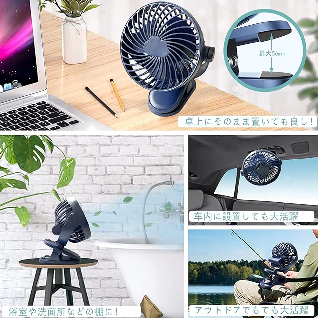 16db静音 卓上扇風機 usb 充電式 クリップ 扇風機 5000mAh電池内蔵 3段階風量調節 左右/上下360度角度調整 長時間連続使用 強力 小型 ミニ 携帯 コンパクト 電池内臓 コードレス 車用 オフィス キャンプ アウトドア テント 自宅 洗面所 トイレ熱中症対策 旅行 花火大会 学校 日本語取扱説明書付き(紺色) | ascend