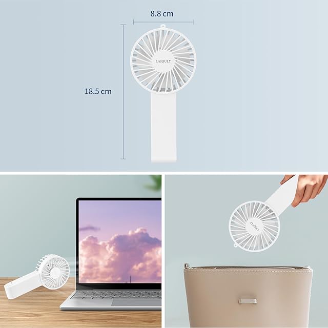 LAIQULY 携帯扇風機 ハンディファン 手持ち扇風機 充電式USB扇風機 静音 強力送風 持ち運び 携帯 小型 卓上扇風機 3段階風量調節 折りたたみ式ベースミニ扇風機 7枚羽根 熱中症対策 ホワイト | ascend