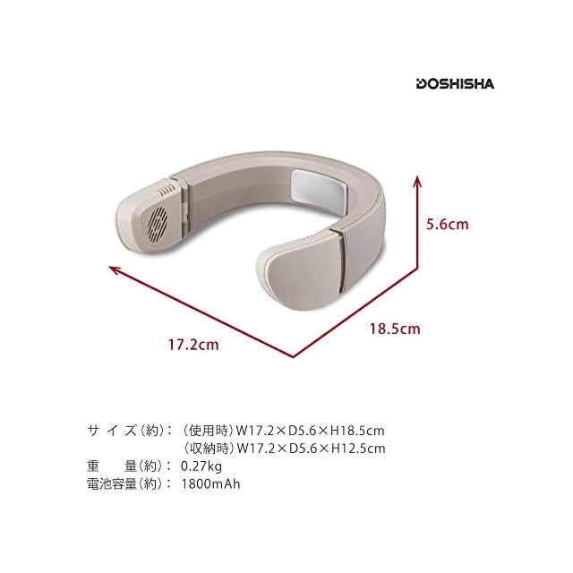 【熱中症対策 節電 省エネ】ドウシシャ ネッククーラー 冷却プレート 首掛け扇風機 携帯扇風機 ネックファン 風量3段階 充電式 Type-c USB Tempo Breeze シャトーベージュ
