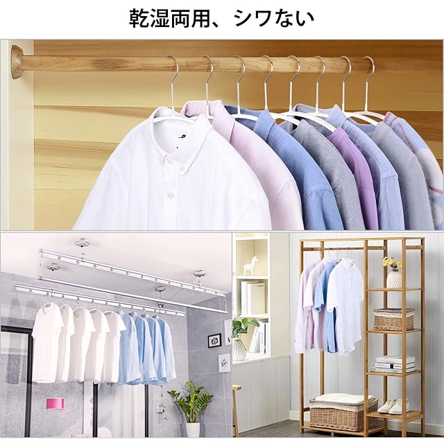 【滑らないハンガー】乾いた衣服を掛けたり、濡れた衣服を掛けたりするのに便利な洗濯ハンガーです。滑りにくいPVC素材でコーティングされているので、服が床に落ちる心配がありません。男性と女性の服に全部適用でき。