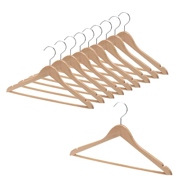 【高品質】徹底した品質管理を行い、高品質で上質な天然木によって作られた木製ハンガー。木材の割れやバリや光沢の剥げなどの不良点の有無の細かくチェックして不良品を極力排除しております。天然木のナチュラルクリアカラーで、自然とインテリアに溶け込みます。