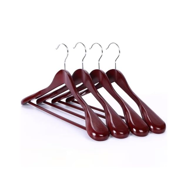 日本の中小企業を応援 木製ハンガー 洋服ハンガー ハンガー セット 衣類ハンガー メンズ レディース ズボンバーが付いた衣類ハンガー 型崩れ防止 360度回転 薄型洋服ハンガー スーツ シャツ ジャケット コート用 (ダークブラウン, 4) | ascend