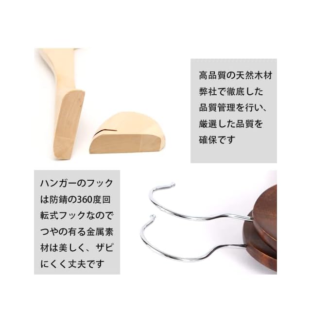 【高級感溢れる】シンプルなデザイン、高級天然木で作られたハンガーですので、木目が綺麗で高級感 溢れます。無毒で安全、耐久性に優れて、重いコート、スーツでも大丈夫です。