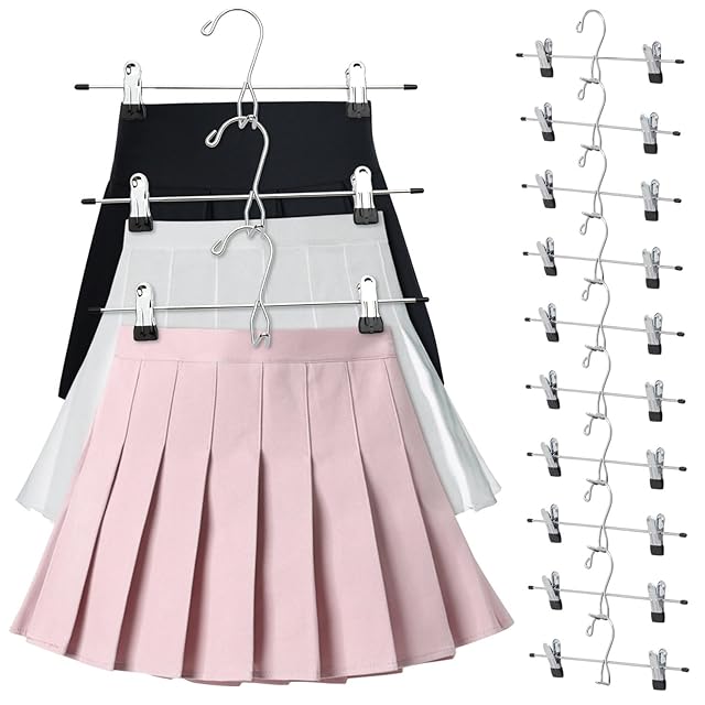 DOIOWN スカートハンガー ズボンハンガー ハンガー 収納 ステンレス かたくずれ防止 すべらない 省スペース 連結式 洋服収納 クローゼット/押し入れ 収納 幅調節可 大人用 子ども用 幅34cm 防錆 10本組 | ascend