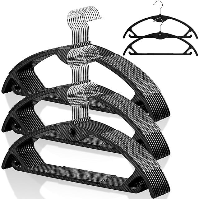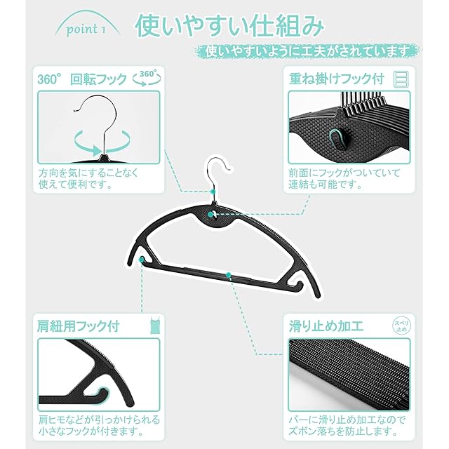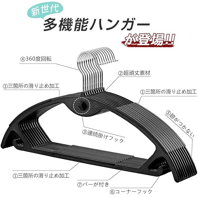 ハンガー かたくずれ防止 30本組 SEWEI 跡がつかないハンガー ハンガー すべらない 洗濯ハンガー はんがー 360度回転フック 連結フック付 ジャケットハンガー 超薄型 乾湿両用 ブラック | ascend