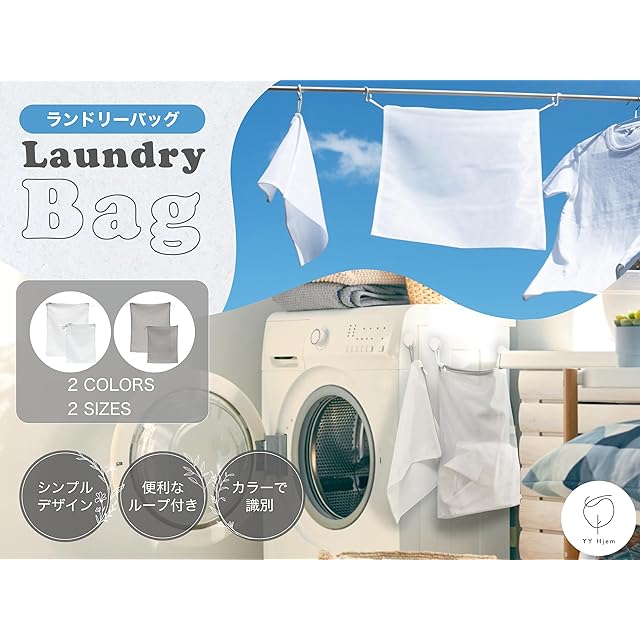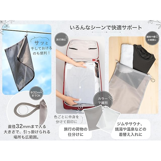 【サイズとカラー】<サイズは2種類> Mサイズ(ループはグレー):30×40cm(ワイシャツ1枚程度が目安)/ Lサイズ(ループはホワイト):40×50cm(セーター1枚程度が目安) <本体カラーは2色>グレー / ホワイト