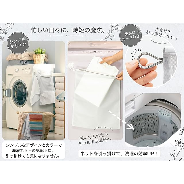 【大きめの便利なループ付き】ネットを引っ掛けておいて洗濯かごの代わりに使用。脱いだ洗濯物はネットに直接いれて、そのまま洗濯機へ。