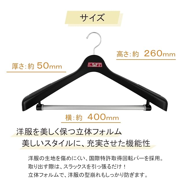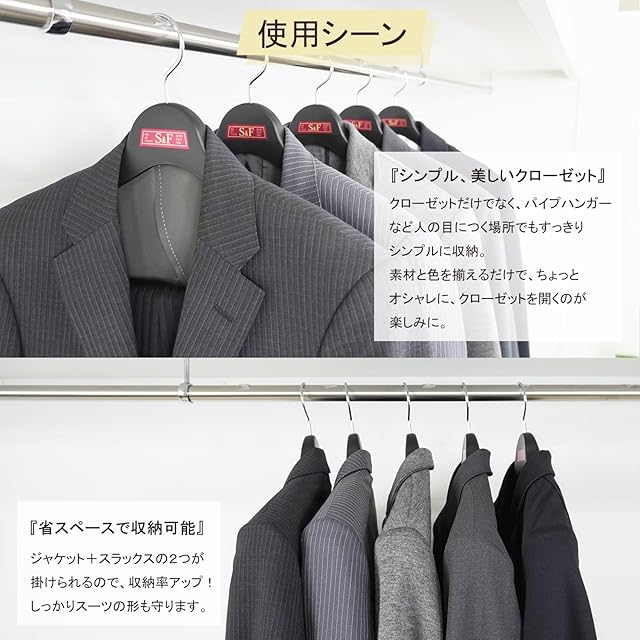国内スーツ仕立て店御用達のプロユースハンガー40センチ 8本セット【シンコハンガー公式】S&Fジャケット回転式40 8本セット|スーツハンガー ジャケットハンガー コートハンガー スーツ用 コート用 ジャケット用 アウター スラックス パンツ ズボン マフラー ストール 収納ハンガー 衣類ハンガー 洋服ハンガー すべり止め すべりどめ シンコハンガー 収納ハンガー 収納 クローゼット 押入れ | ascend