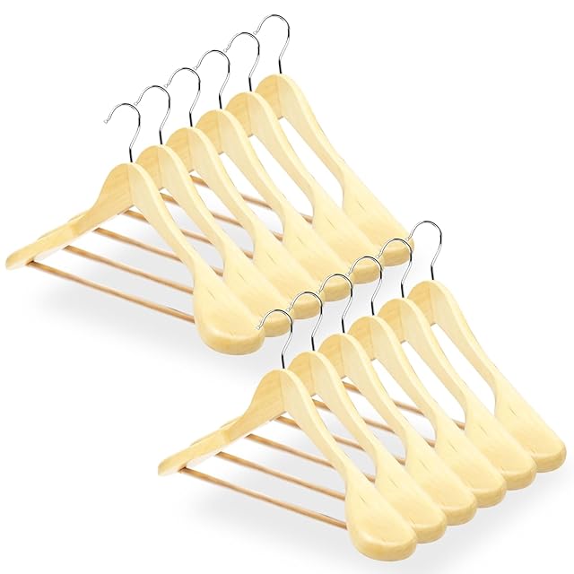 【ストレス軽減のための工夫】①木製ハンガーのフック部分は便利な360°に回転する仕様になっており、ハンガーラックにかけたり、取り外したりする場合に便利です。②スラックスやネクタイなどをかけるバーの部分には滑り止めのシリコンが付いているので、滑り落ちるストレスから解放されます。③先から端まで全て丸みを帯びた形状になっており、洋服がほつれたり、かける人を傷つけることを防ぎます。