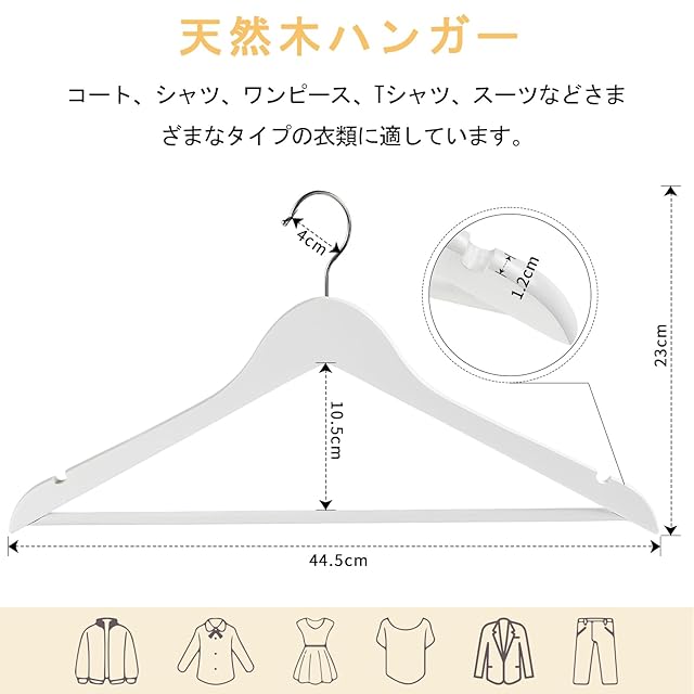 【高級感溢れる】シンプルなデザイン、高級天然木で作られたハンガーですので、木目が綺麗で高級感 溢れます。無毒で安全、耐久性に優れて、重いコート、スーツでも大丈夫です。
