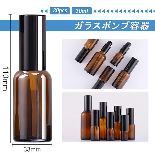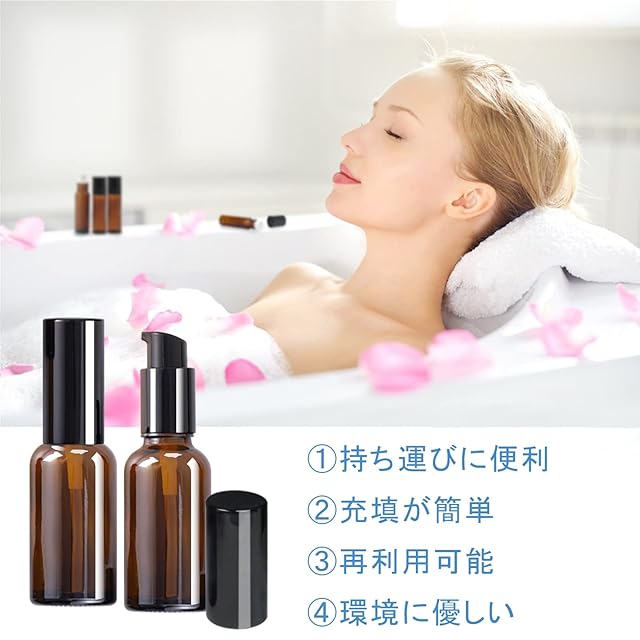 適用場合:便利なポンプが付いた、茶色遮光瓶タイプの保存容器。精油、乳液、シャンプー、化粧水など、あらゆる種類の液体の保管に適しています。そして家庭と出張旅行用品をお勧めです。