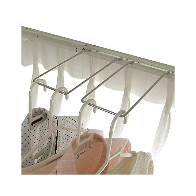 従来のカーテンレールハンガーと比較して約 6cm 長くなっており、より大きな衣類に対応が可能です。お買い得な2個組です。 ダブルタイプのカーテンレールの間に、ハンガーラックを引っ掛けるだけで簡単に取付けが可能です。 シンプルなデザインなので、お部屋の景観を損なわずにハンガーラックを設置出来ます。