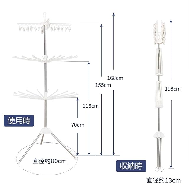 サイズ:幅80×奥行80×高さ168cm(使用時)、幅15×奥行15×高さ198cm(収納時)