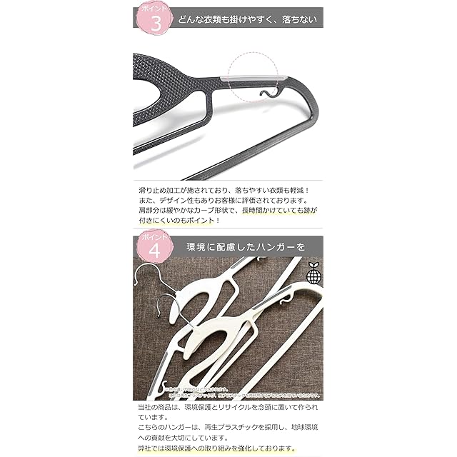 1枚当たり約5秒短縮!洗濯物干しの改善ができ、衣類にも優しい多機能ハンガー!すべりどめ付きで落ちやすい衣類もしっかりと固定!
