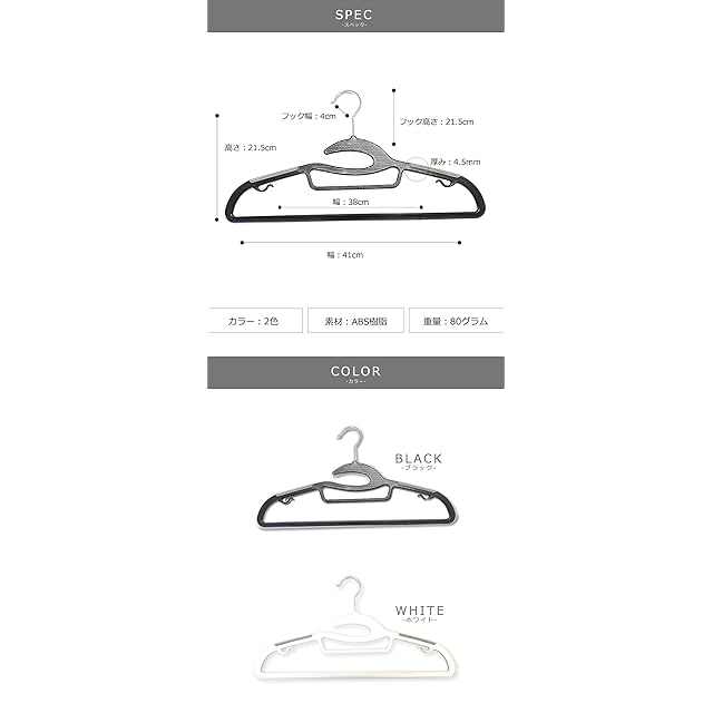【サイズ】幅:41cm / 厚み:約4.5mm / 高さ:約21.5cm / フック幅:約4.5cm / フックの高さ:約8cm / 横幅(中):38cm / 滑り止め:7.5cm / 重量:約80g(1本あたり)