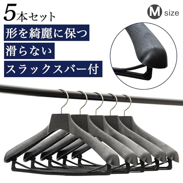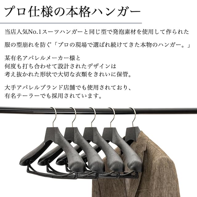 TOKYOHANGER 発泡素材 ハンガー 5本セット【安心の日本製】滑り止め加工 型崩れ防止 高級仕立て 丈夫な作り『黒発泡 NO880タイプ M(41.5cm)』ジャケットハンガー スーツハンガー | ascend