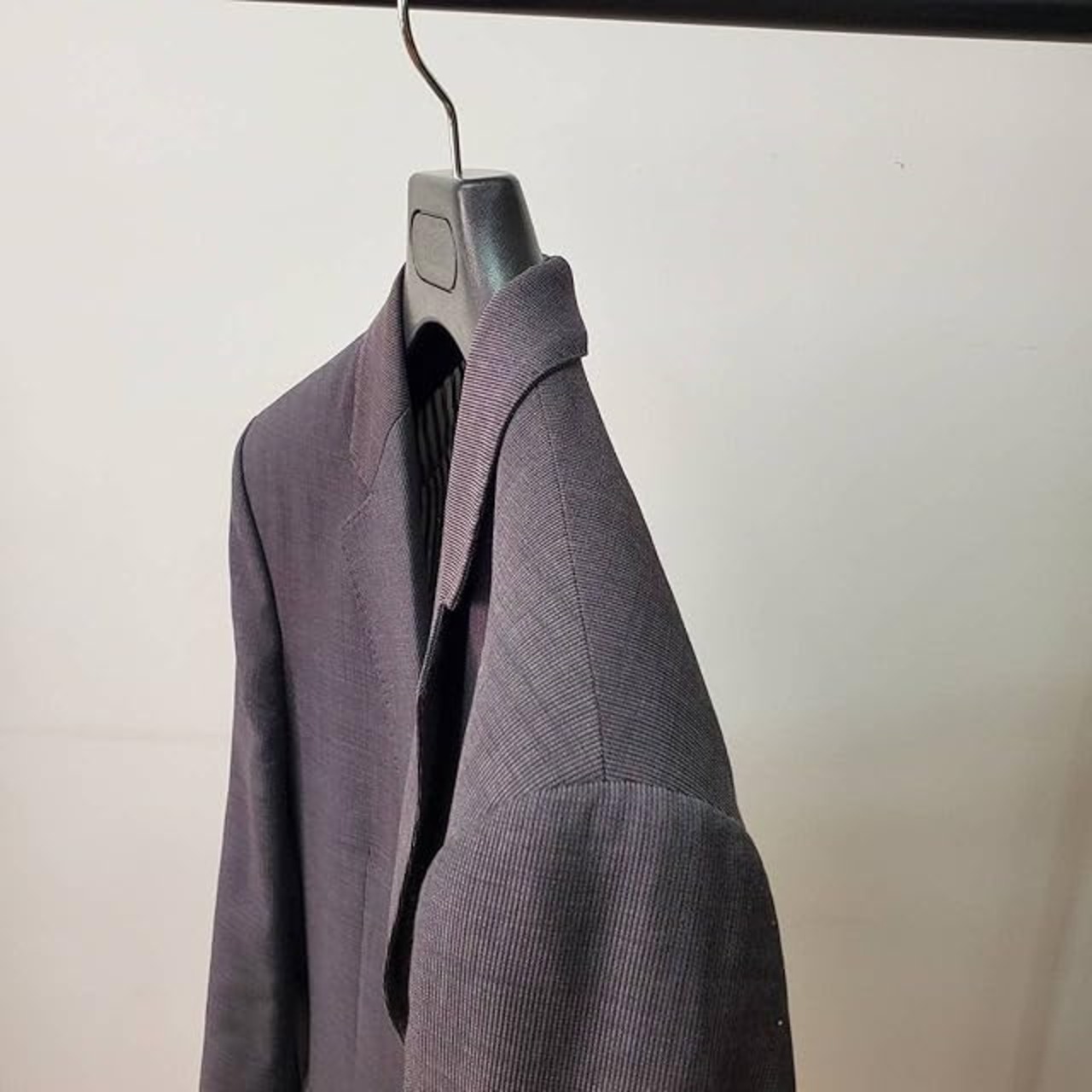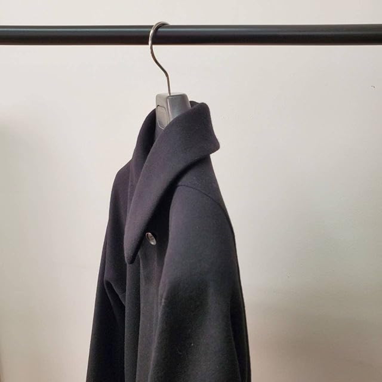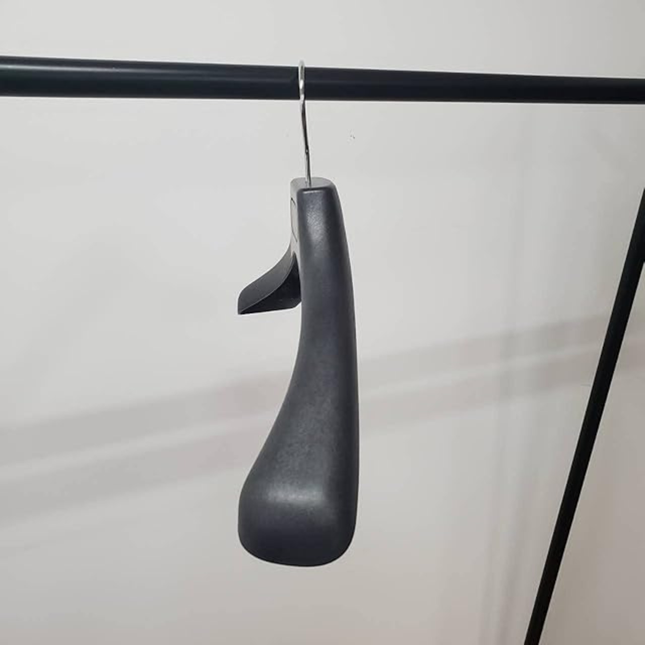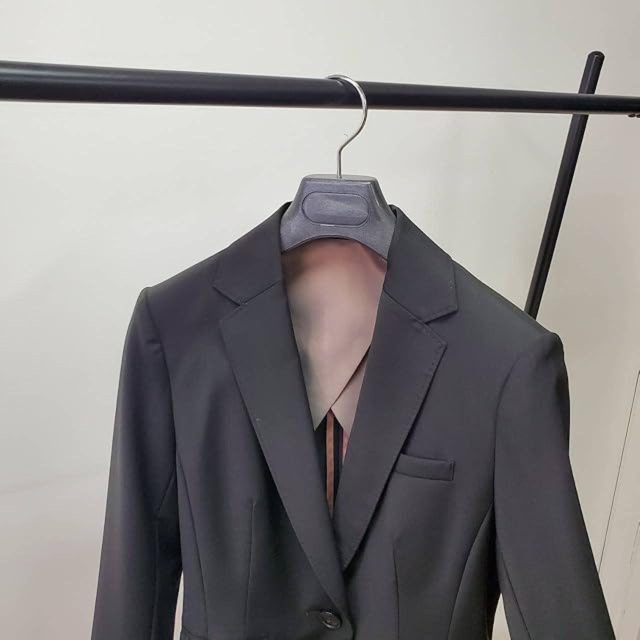 ハンガー全体にシボが入っているのと、黒発泡素材を使用しているため、一般的なプラスチックハンガーより高級感が増しています。