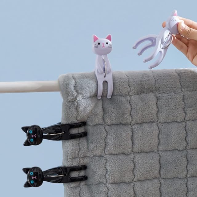 Amosfun 洗濯ばさみ 竿ばさみ 猫 大 タオル 毛布 シーツ用 おしゃれ かわいい 錆びない すべらない つまみやすい 4個セット 強力 竿用ピンチ 強風対策 プラスチック