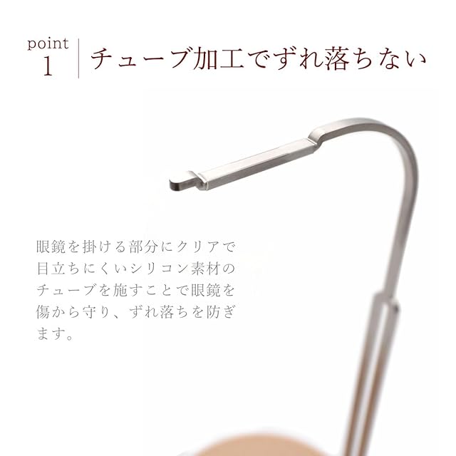 メガネを掛ける部分にはクリアで目立ちにくいシリコン素材のチューブを施しており、ズレ落ちと傷を防止。