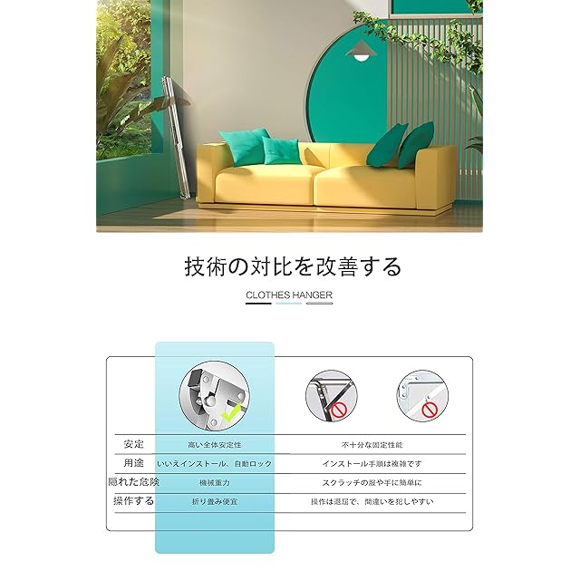【手ごろな高さ、長さ】:横幅が伸縮可能、幅約120 ~ 200×奥行約69×高さ約132cm。収納時:(約)高さ135cm。屋外、ベランダにも適用できます。ふとんを干しても、洗濯物をたくさん干してもOK!