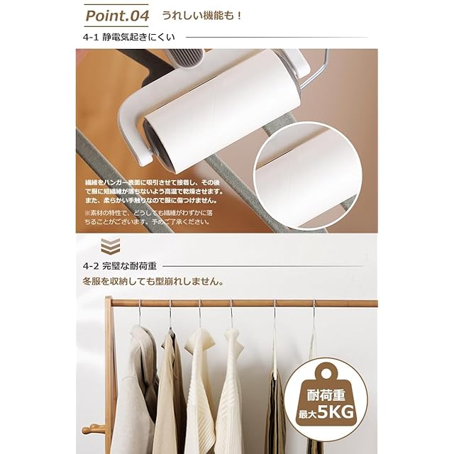 【完璧な耐荷重】高品質のABS樹脂材料で作られ、靭性が良く、変形しにくく、強く曲げても壊れにくいです。各ハンガーの耐荷重が約5KGで、冬の厚手のコートやダウンジャケットを掛けるのは最適です。