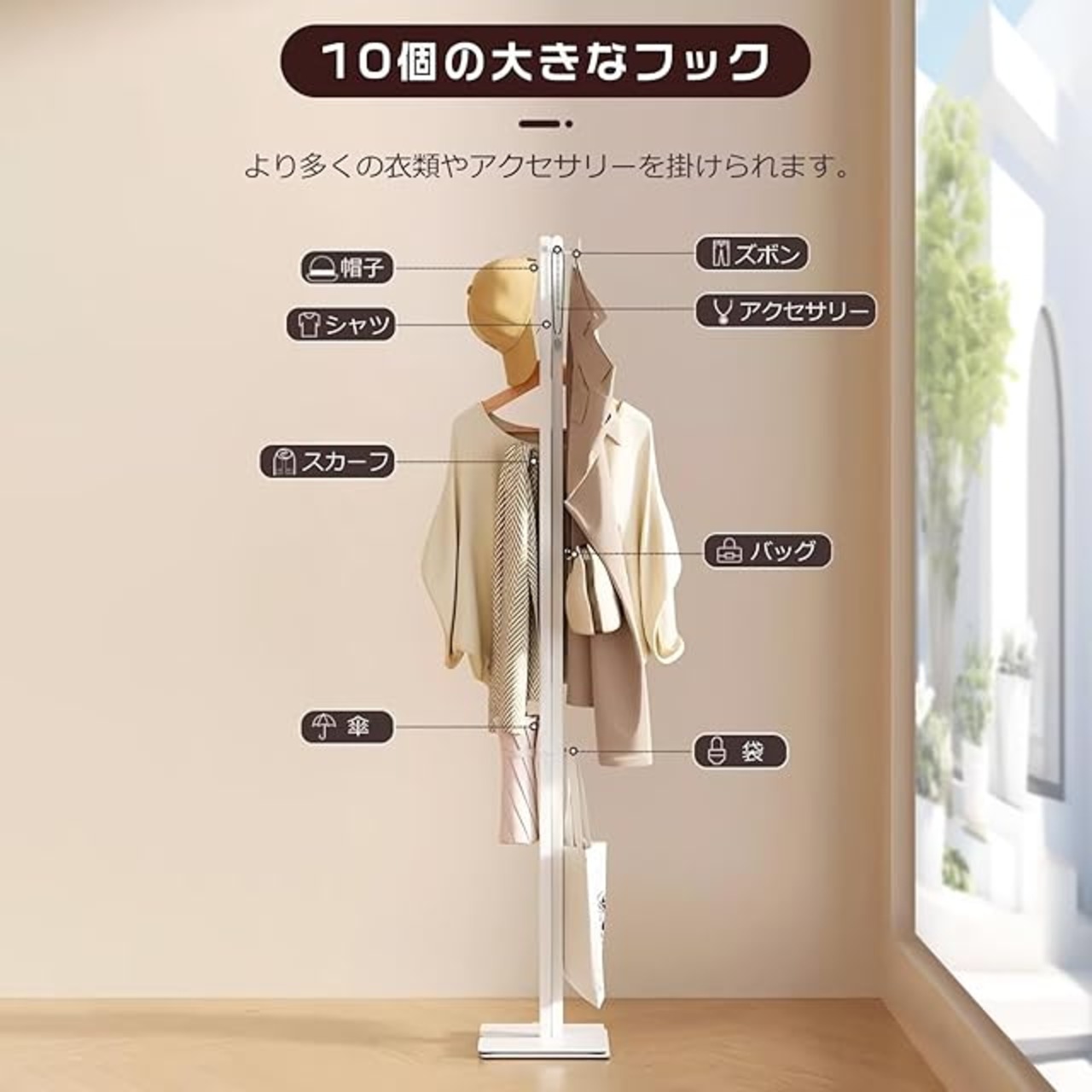 【安定性良い】頑丈なスチール製のハンガーラックなので、強度は強くて、しっかり安定しています。重い底座でしっかりと安定しており、倒れるのを防ぎます。